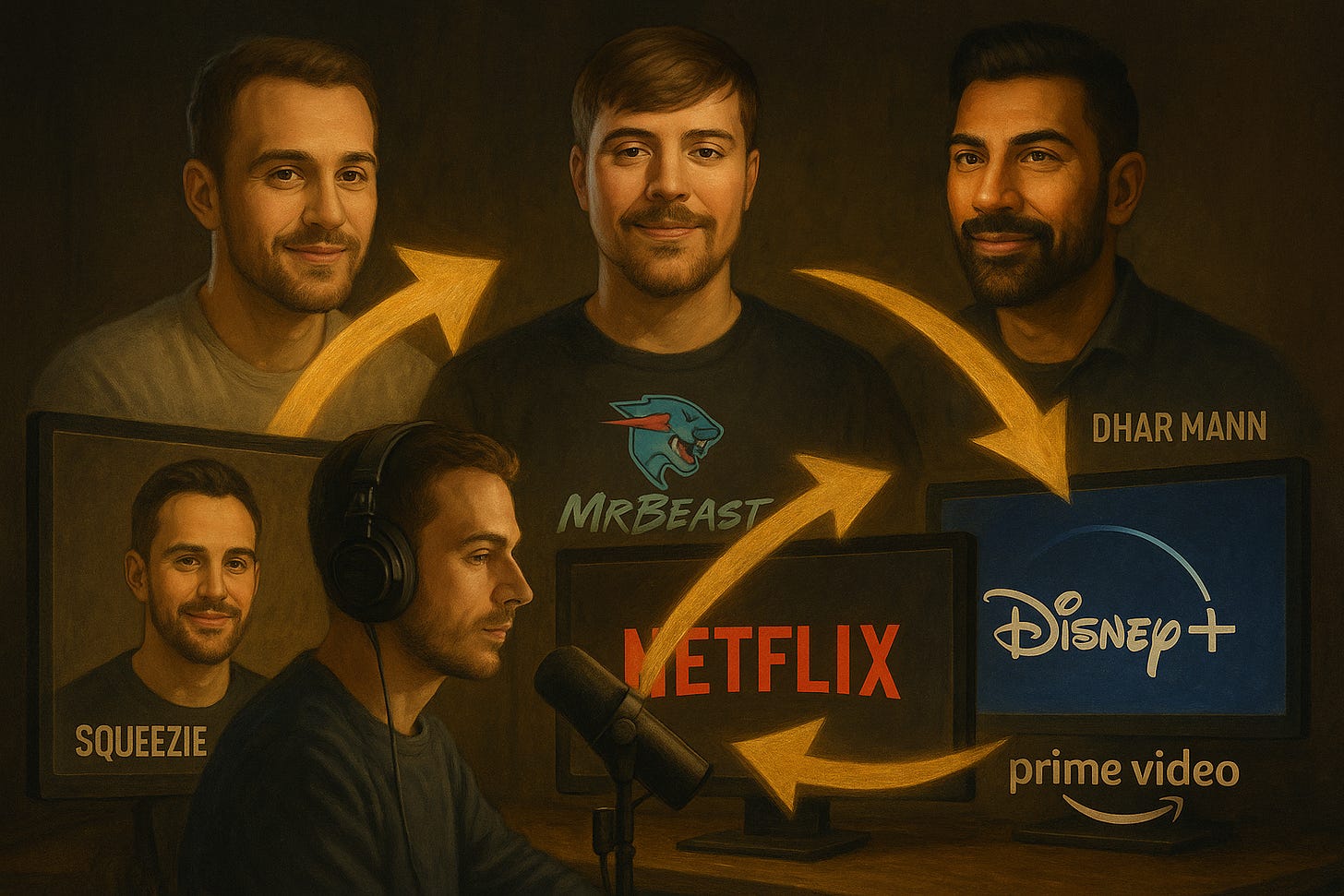 2025 marque un tournant historique : les créateurs de contenu vont dépasser les médias traditionnels en revenus publicitaires cette année. Netflix sponsorise Squeezie, Disney+ acquiert Inoxtag, Amazon Prime investit 100 millions sur MrBeast. Les frontières explosent entre streaming, télé traditionnelle et créateurs digitaux.