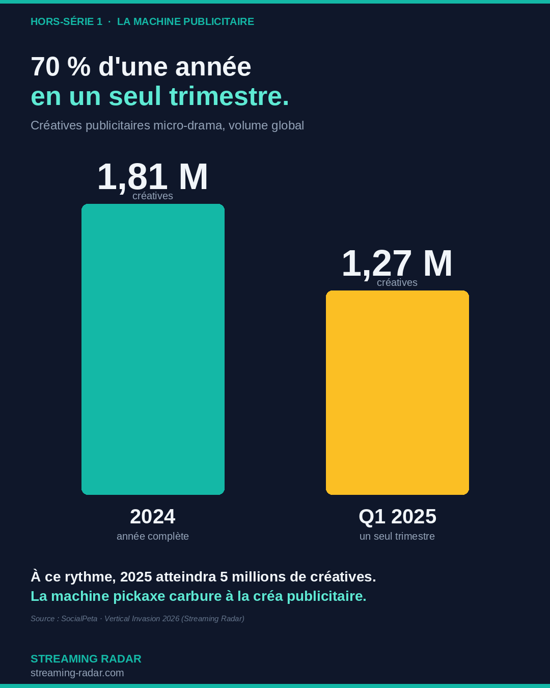 Cet article est en deux parties. La première (gratuite) explique le marché : c’est quoi le vertical drama, comment marche la pub mobile, et pourquoi il y a un paradoxe au cœur de l’économie de ces apps. La seconde (réservée aux abonnés Streaming Radar) déroule l’analyse complète : qui sert les pubs, qui fabrique les créas, pourquoi les nouveaux entrants se trompent de côté du trade, et pourquoi ByteDance vient de tout déstabiliser en février 2026.
